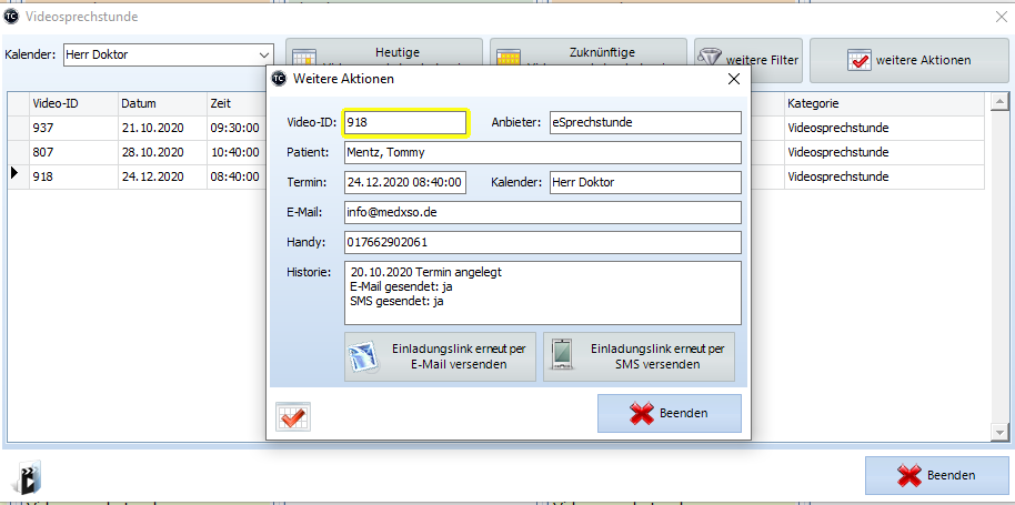 Buchen Sie entweder direkt Vor-Ort in der Praxis Ihren Patienten in die Videosprechstunde ein oder geben Sie Terminslots für die Online-Terminvergabe frei. Sobald Sie einen Termin buchen oder bestätigen trägt TimeControl den Patienten für Sie in die Videosprechstunde ein. Bei Bedarf kann auch TimeControl die entsprechenden Einladungslinks per E-Mail oder SMS versenden.