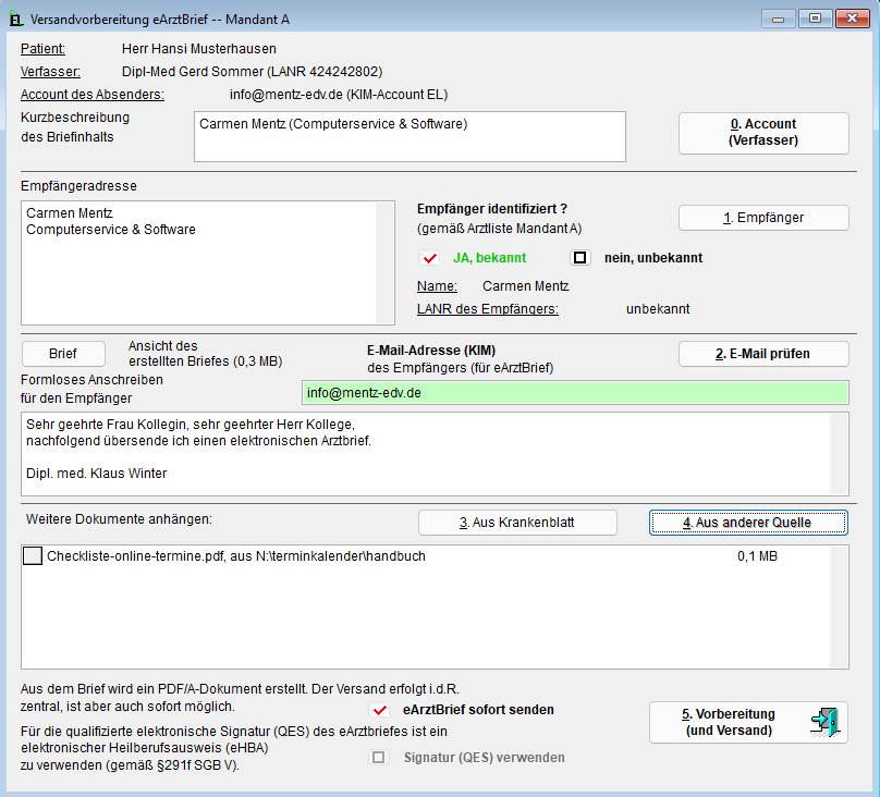 - Sie können ein vorhandenes Dokument direkt als eArztbrief versenden